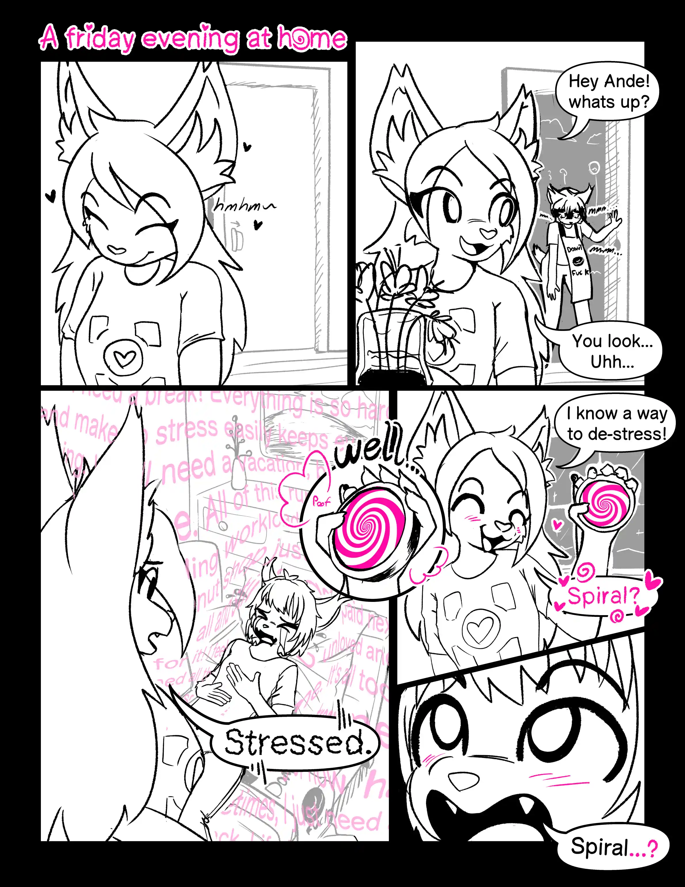 A short nsfw comic by Hima ([[hima_nsfw]]) about hyponosis, stress, and empty-headedness