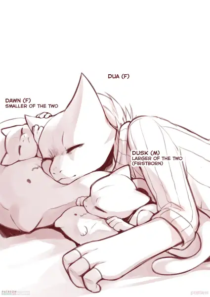 A comic featuring Bahnbahn's Mewtwo character Dua as she gives birth during her first pregnancy.