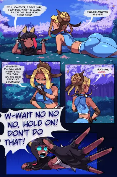 This comic series features Andre, a college dropout boy searching his way to become a great Pkmn trainer to prove himself he can do something to be proud of... Little did he know that this adventures will come with different types of "situations" he has to deal with in his path. Chapter 2: - Trapped in a tentacle pit for hours - Sensory deprivation - Body modification - New trainer "Romi" This version lacks the mosaic censorship but the images are also of a lower quality, you can purchase the hires versions from the artist with links to those sources on their Twitter account.